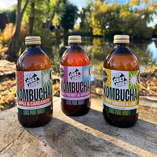 Once the ferment is ready, our batch is then flavoured in glass jars with pure fruit and spices, creating a naturally carbonated beverage that is kind to your gut.