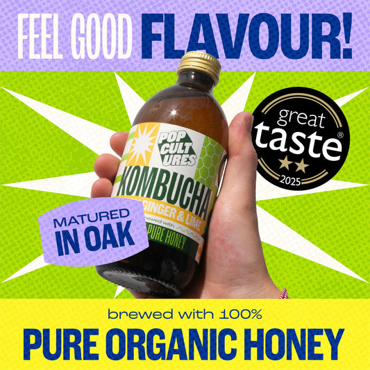 Our delicious award winning kombucha is brewed in oak barrels with 100% pure organic honey instead of refined sugar for a unique depth of flavour and added health benefits.