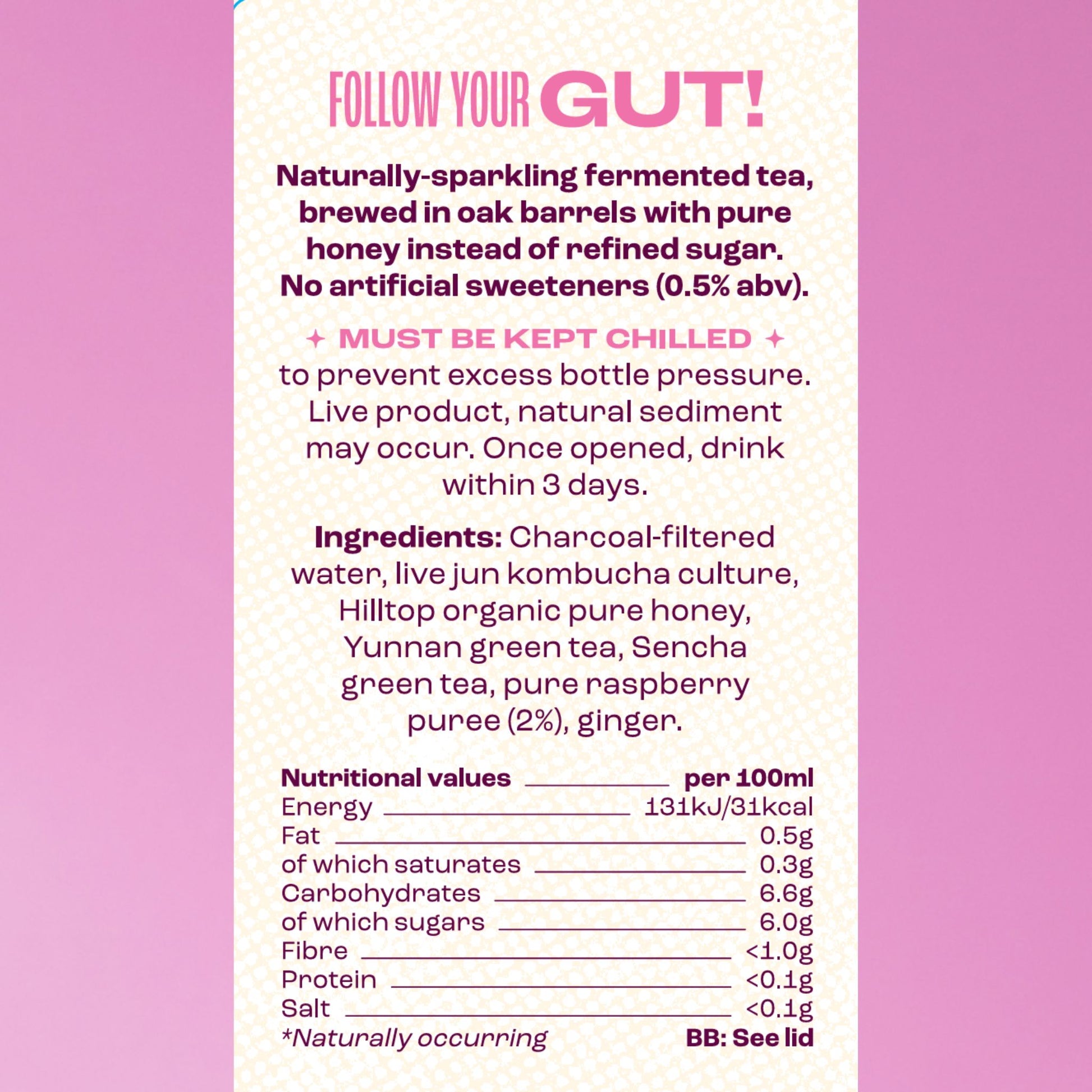 Like all fermented drinks, our Jun contains trace amounts of alcohol (typically less than 0.5% ABV), which is below the legal threshold for alcoholic beverages in the UK. This is a natural byproduct of fermentation and is comparable to the alcohol content in ripe fruit or fresh bread. It's safe for most people, but if you're avoiding alcohol completely (pregnancy, medication, recovery), we'd recommend checking with your doctor first.